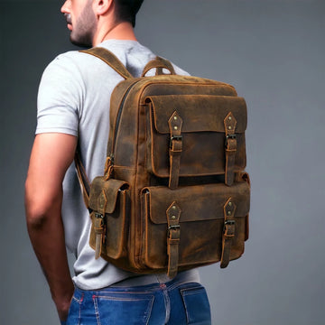 Leather Backpack with Laptop Compartment - 15 Inch Travel Bag