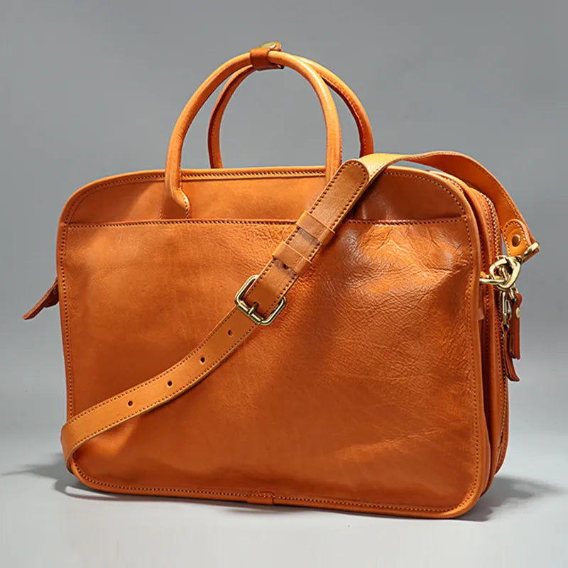 A professional leather messenger bag designed for business professionals who need reliable laptop protection and...