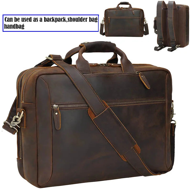 Men's Crazy Horse Briefcase 16" Laptop Shoulder Bag