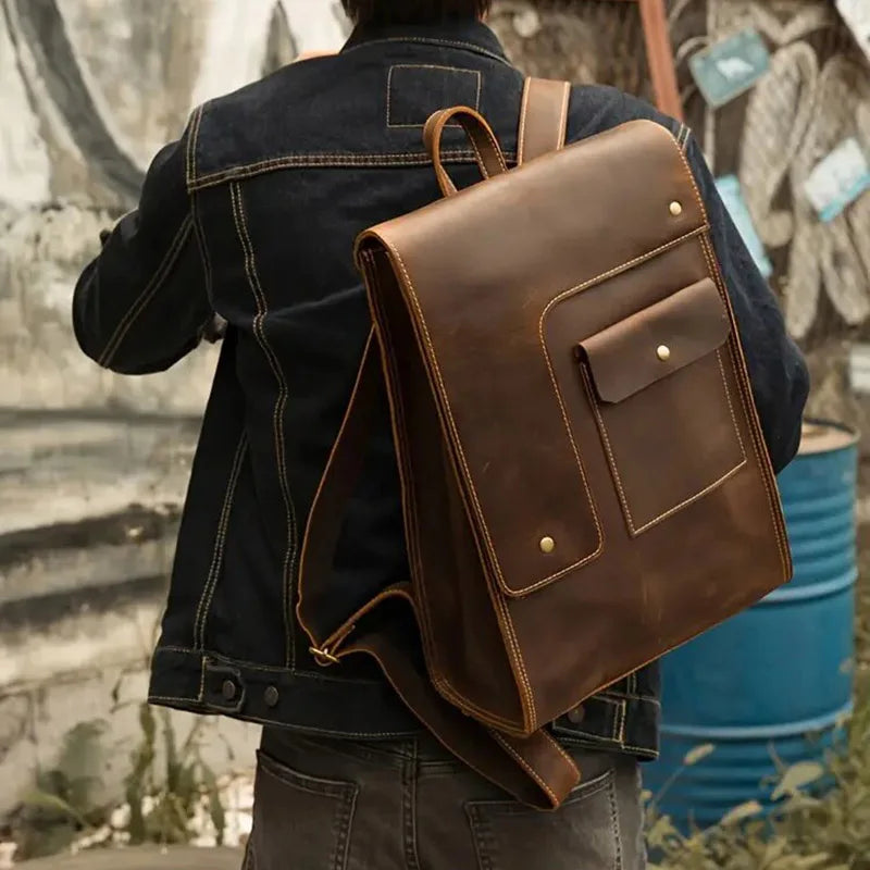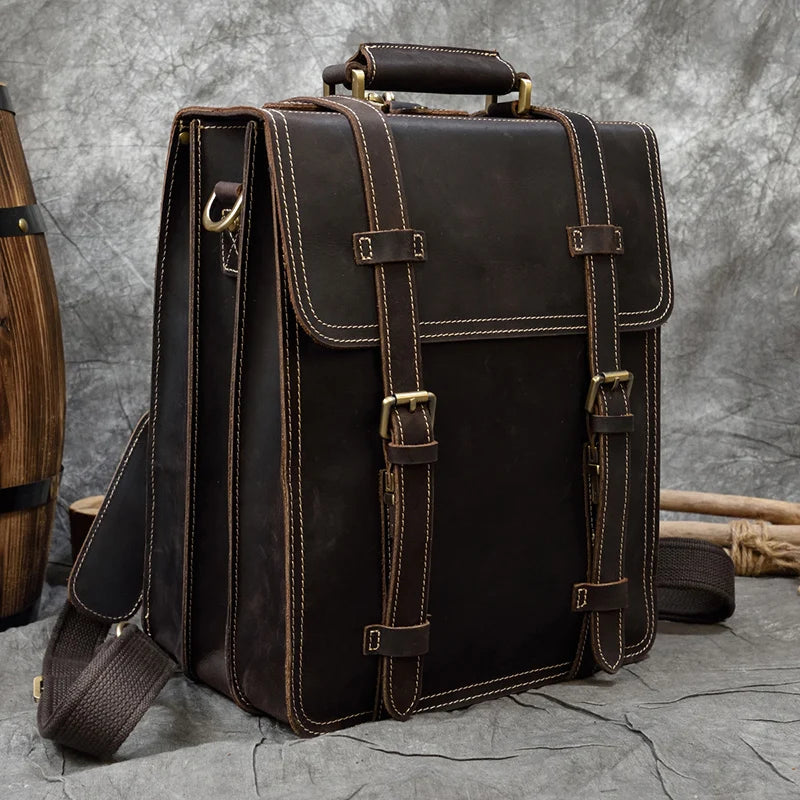 Vintage Leather Business BackpackCarry your business essentials in style with this crazy horse genuine leather...