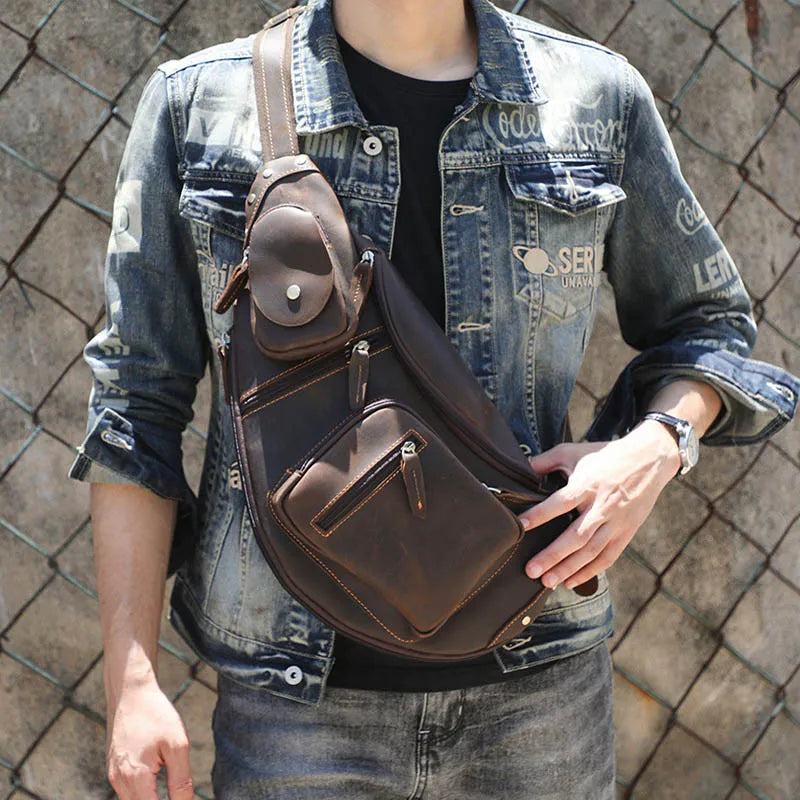 Men's Crazy Horse Chest Pack Anti-Theft Sling Backpack