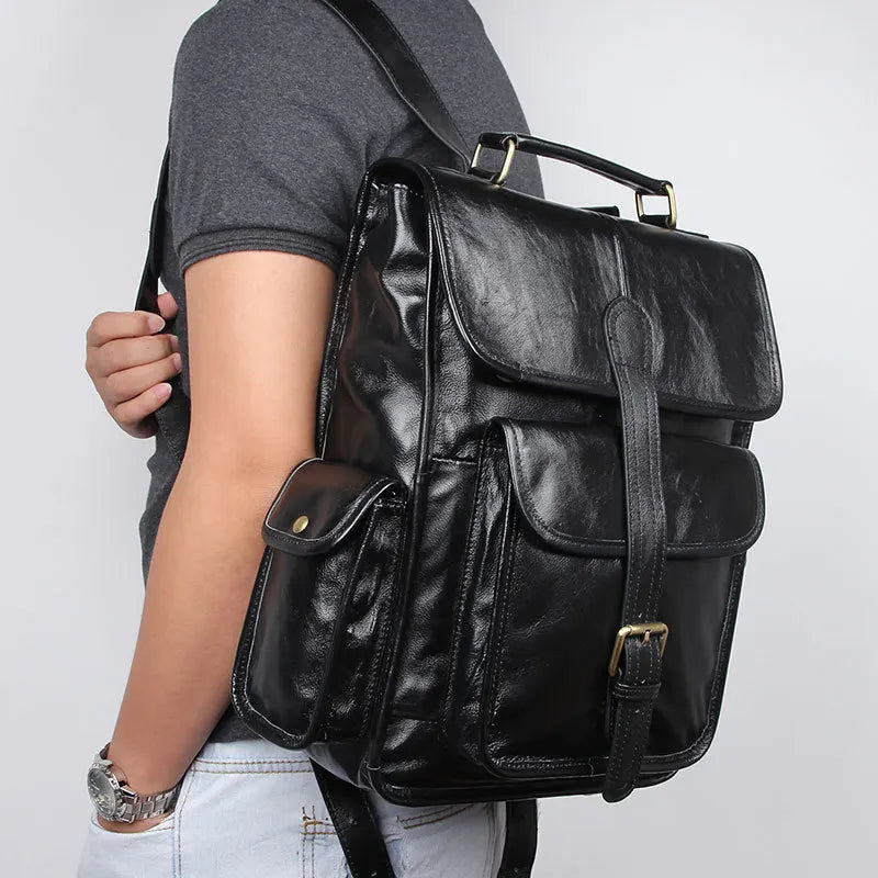 Crazy Horse Leather Backpack - 15 Inch Laptop Rucksack for Men