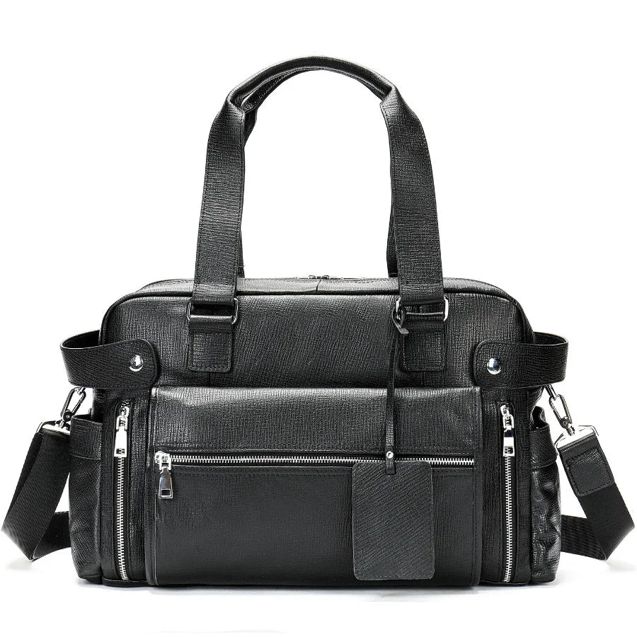 A genuine leather briefcase designed for professionals who need versatile storage for business and travel....
