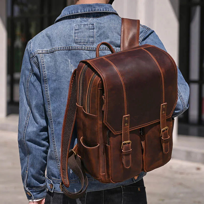 Crazy Horse Leather Backpack - 15 Inch Laptop Rucksack for Men