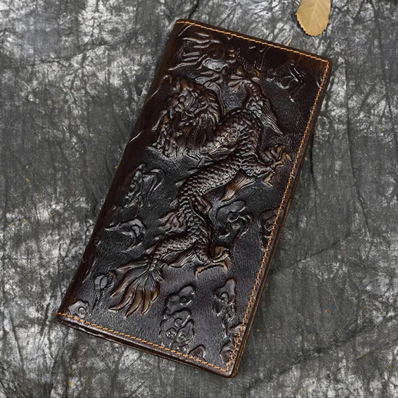 Embossed Dragon Genuine Leather Long WalletMake a bold statement with this distinctive vintage dragon embossed...