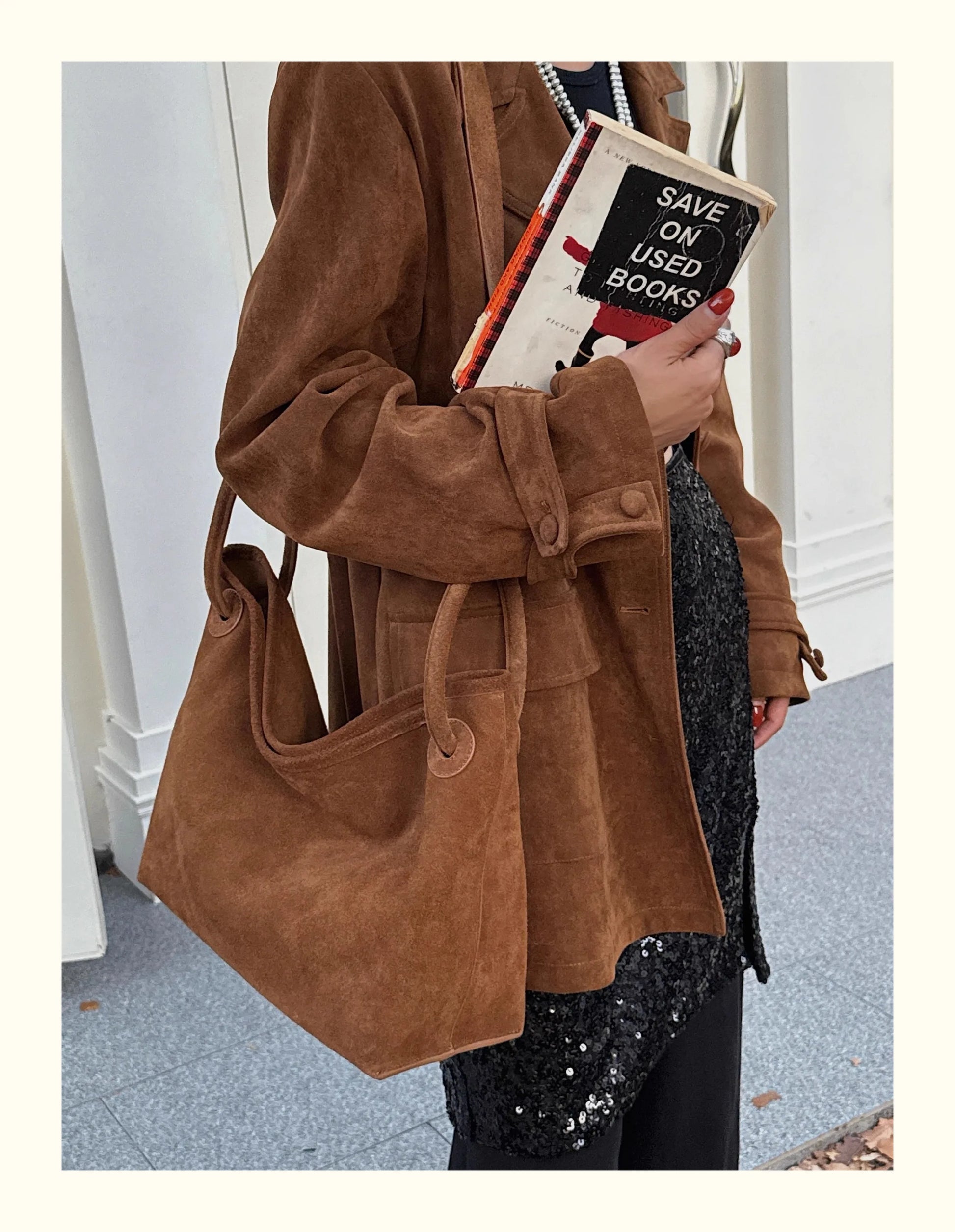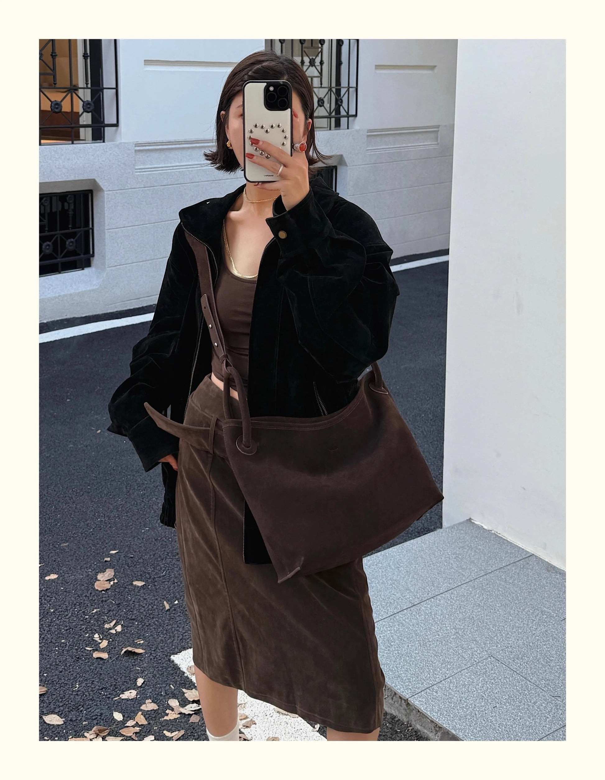 Elevate your winter style with this distinctive Amy green suede satchel tote. Designed for women who appreciate premium matte suede cow leather quality and need a large luxury bag for work and daily life, this Euro-Russia style shoulder bag combines international design influences with practical functionality for polished everyday use in 2026 and beyond.