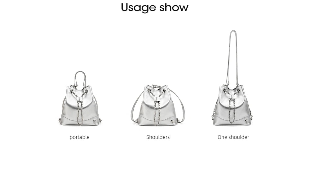 This versatile backpack features distinctive chain accents that add contemporary style to your daily carry. Designed for women who value both fashion and function, it's perfect for school, work, or weekend adventures.