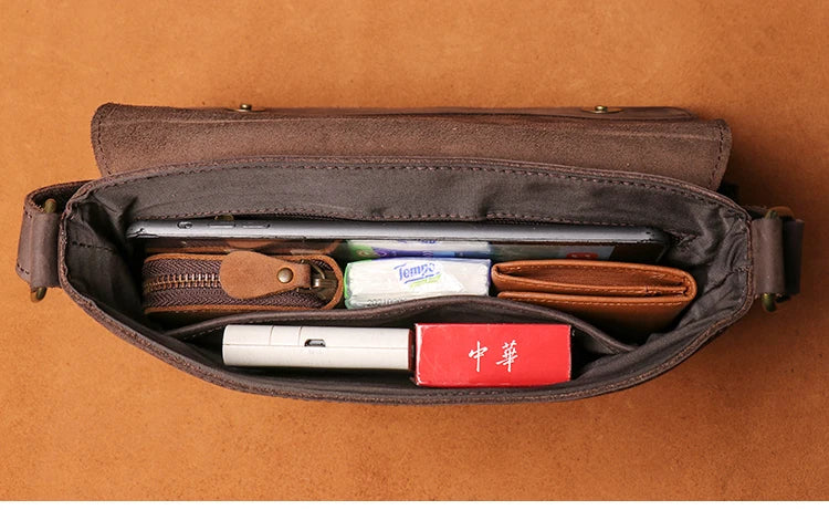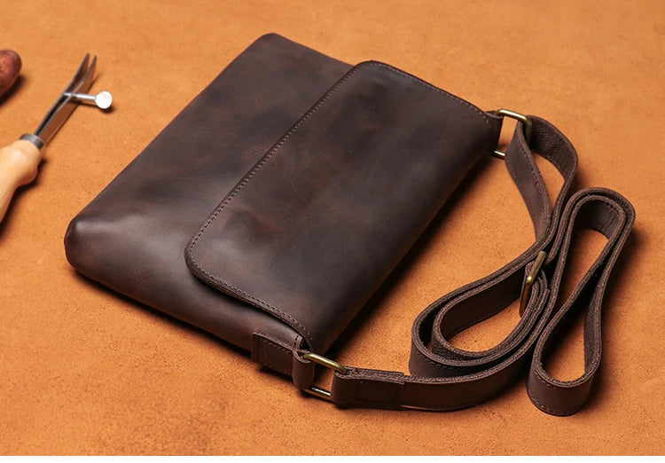 A versatile leather bag that combines vintage-inspired design with modern functionality.