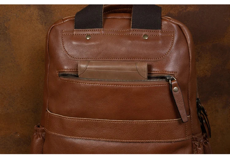 A versatile leather backpack designed for travel, work, and daily use. Crafted from genuine leather with a vintage finish, this large-capacity backpack offers ample storage and organization for professionals, students, and travelers alike.