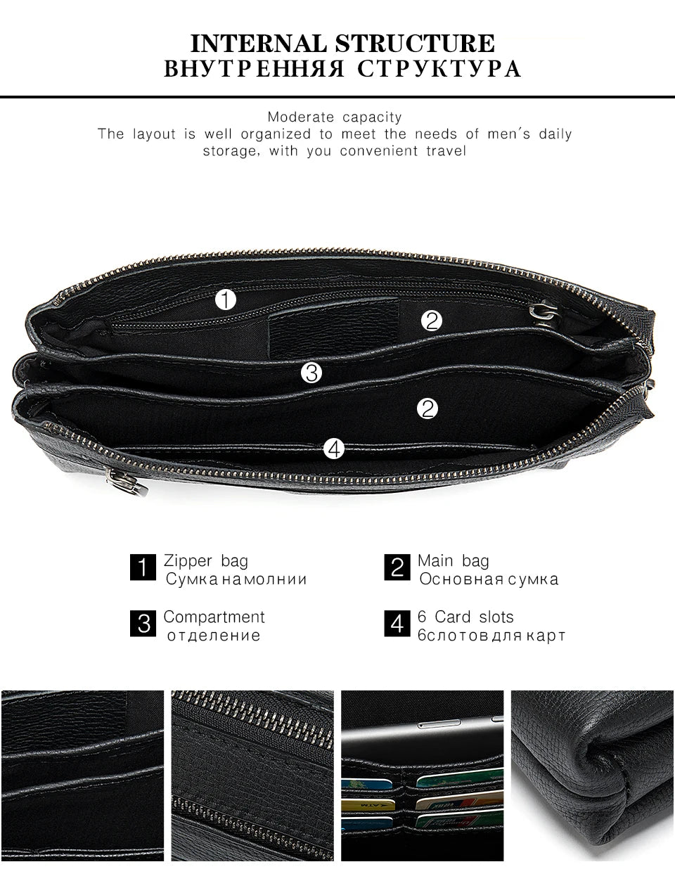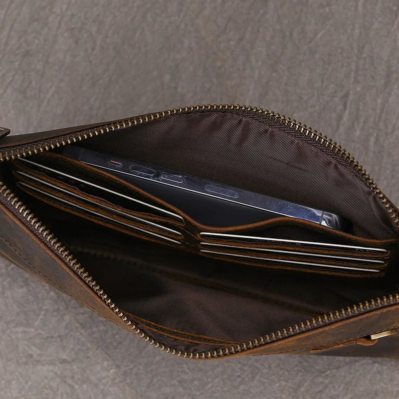 Keep your iPad and business essentials organized with this genuine leather clutch wallet. Designed for men who need to carry a 7.9-inch iPad, documents, and valuables in one secure place, this soft leather hand purse combines zipper closure functionality with professional business clutch bag design.