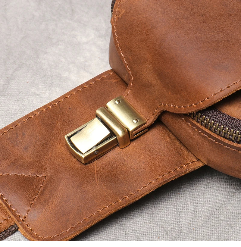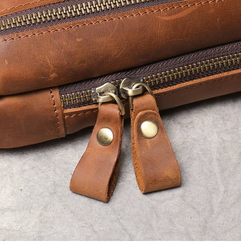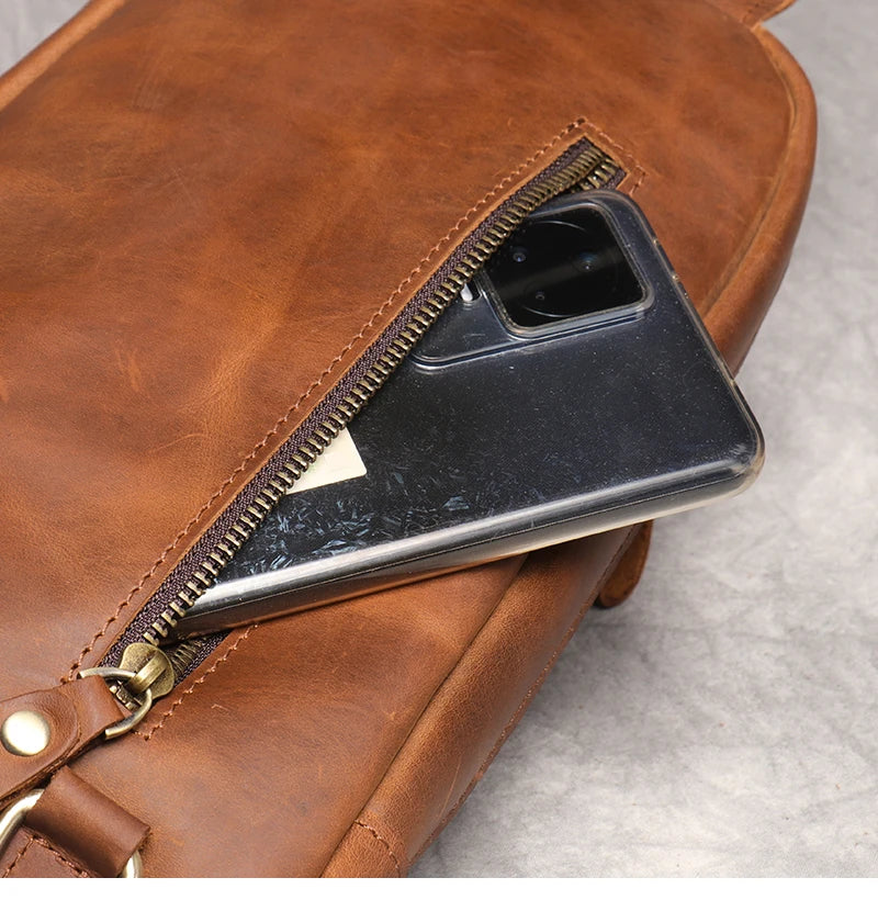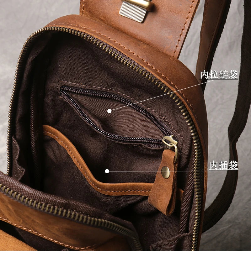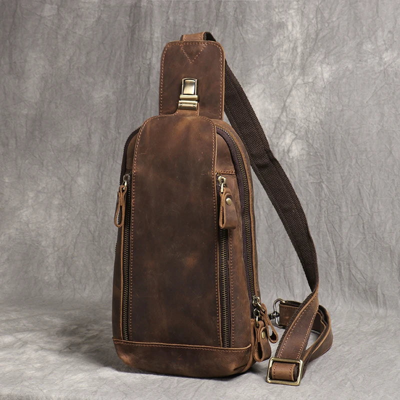 A compact crossbody bag crafted from genuine crazy horse leather with a vintage, weathered finish. Designed for everyday carry, this sling bag offers practical storage for tablets, essentials, and personal items.