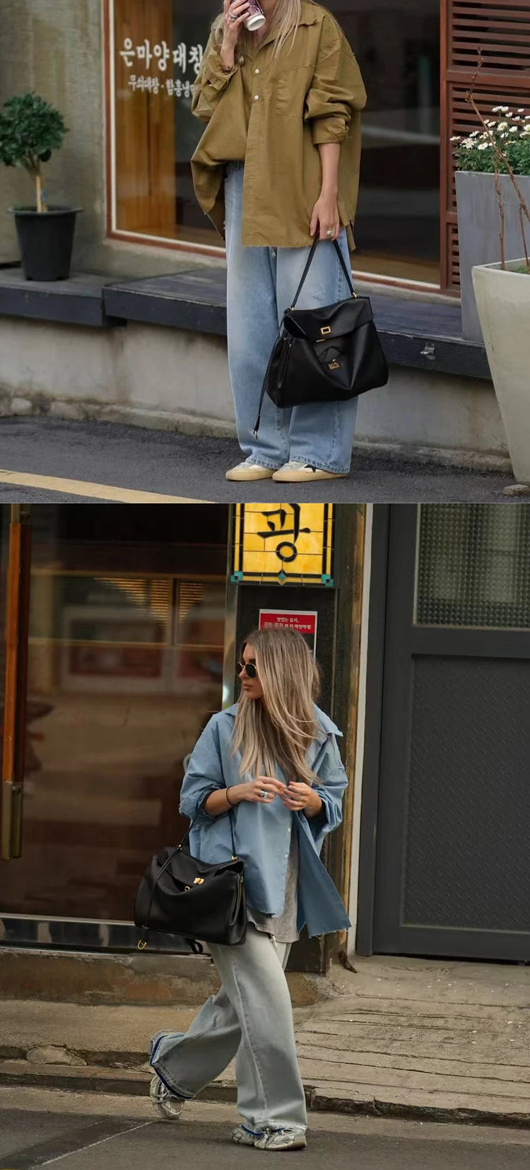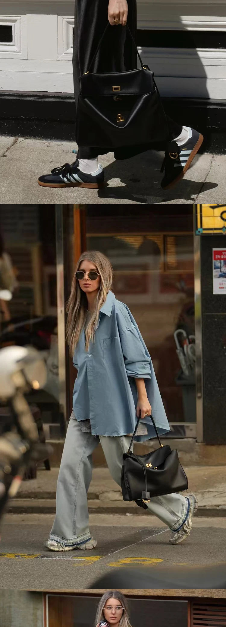 Leather Tote Bag – Large Capacity Shoulder Bag with Lock Closure