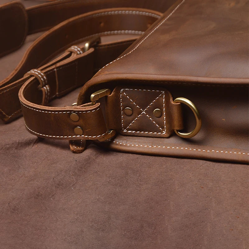 Crazy Horse Leather Messenger Bag with Laptop Compartment