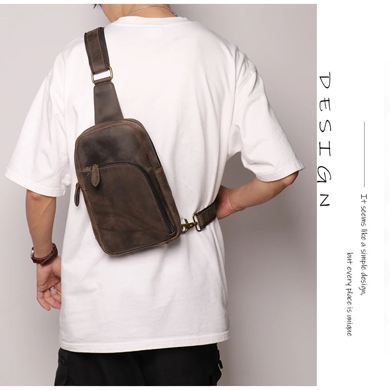 Leather Sling Bag – Compact Crossbody Chest Pack for Daily Use