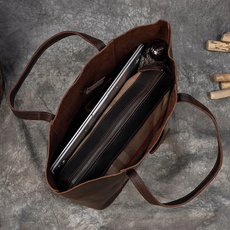 Versatile 2-in-1 Crazy Horse Leather Tote